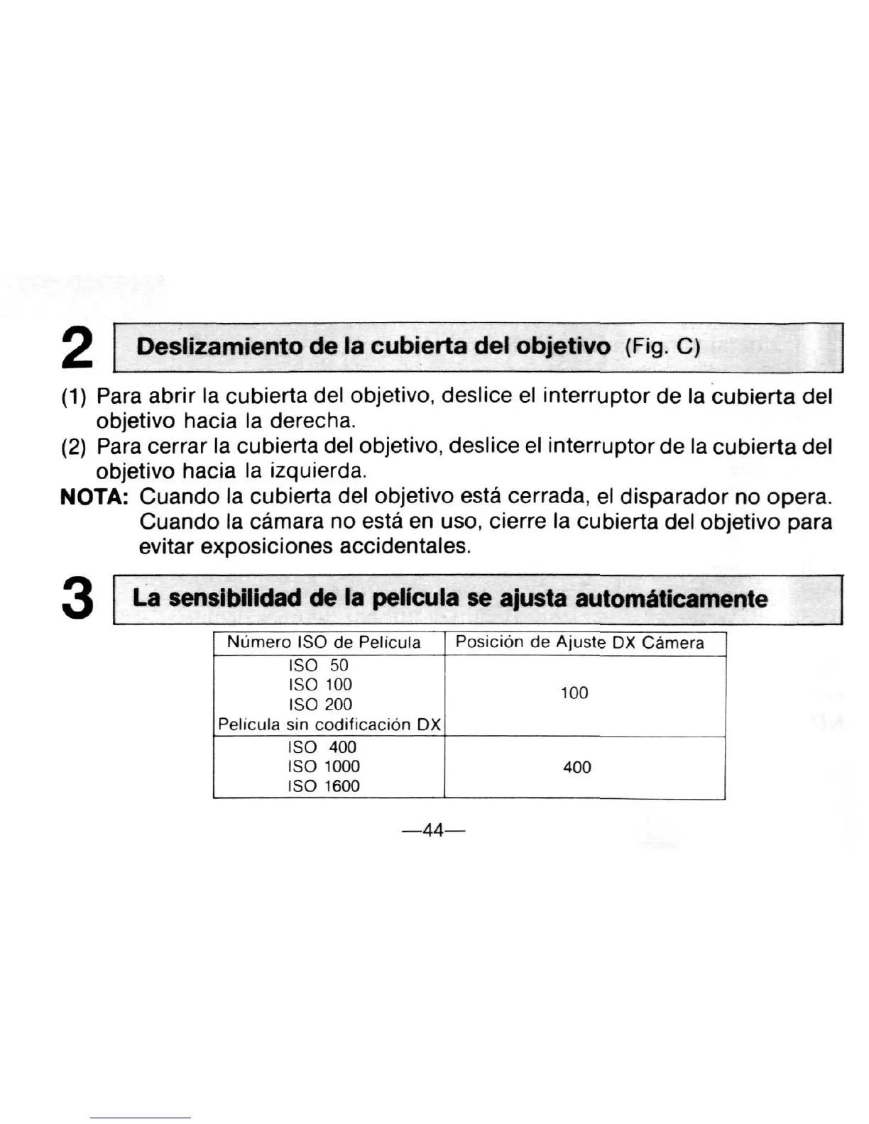 NOTA: Cuando la cubierta del objetivo esta cerrada, el disparador no opera.