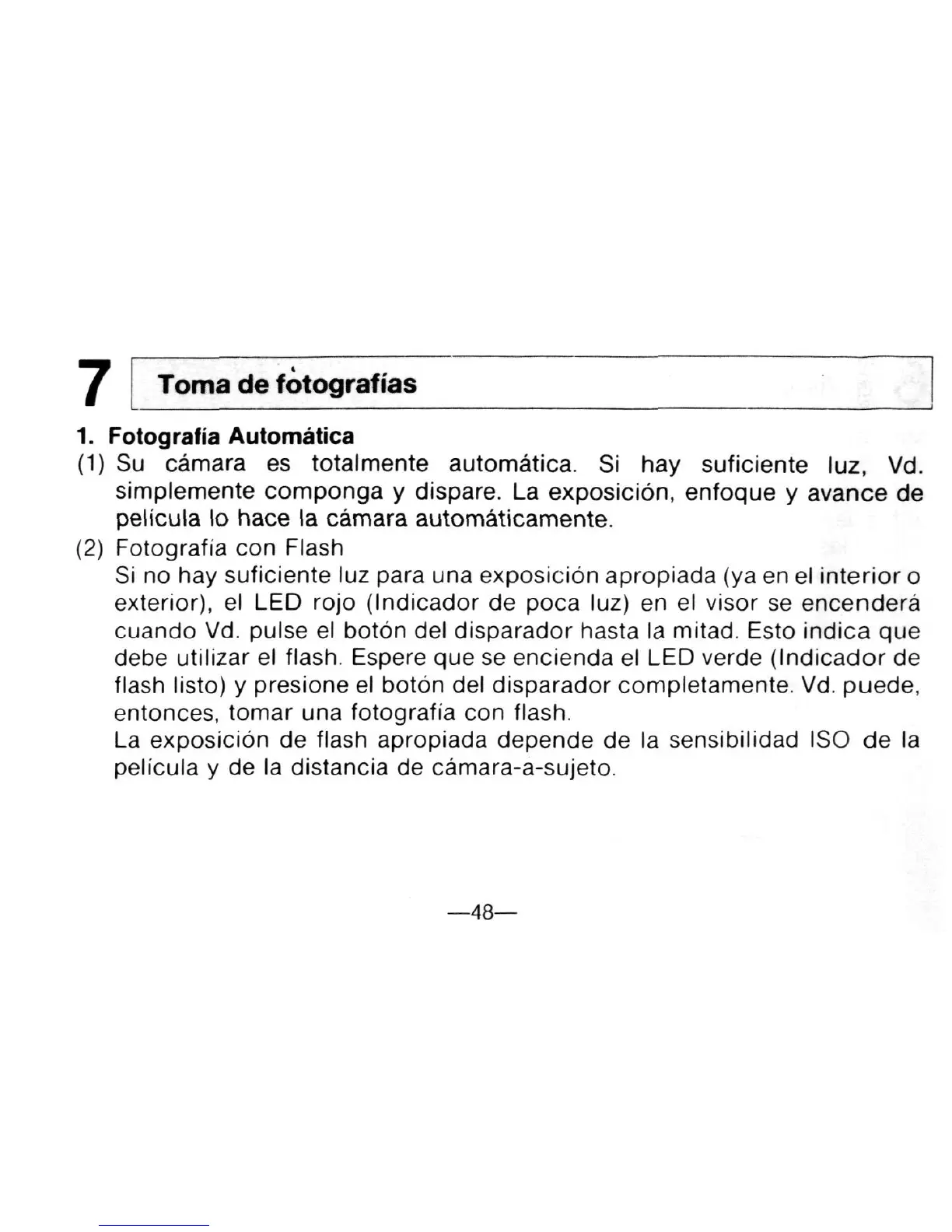 (1) Su camara es totalmente automatica. Si hay suficiente luz, Vd.