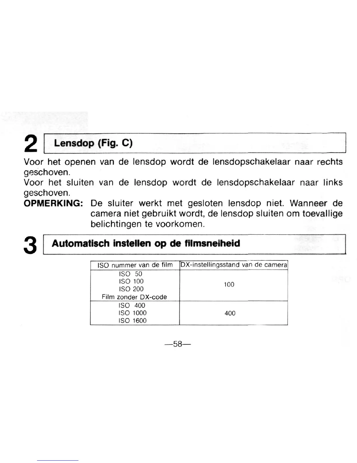 OPMERKING: De sluiter werkt met gesloten lensdop niet. Wanneer de