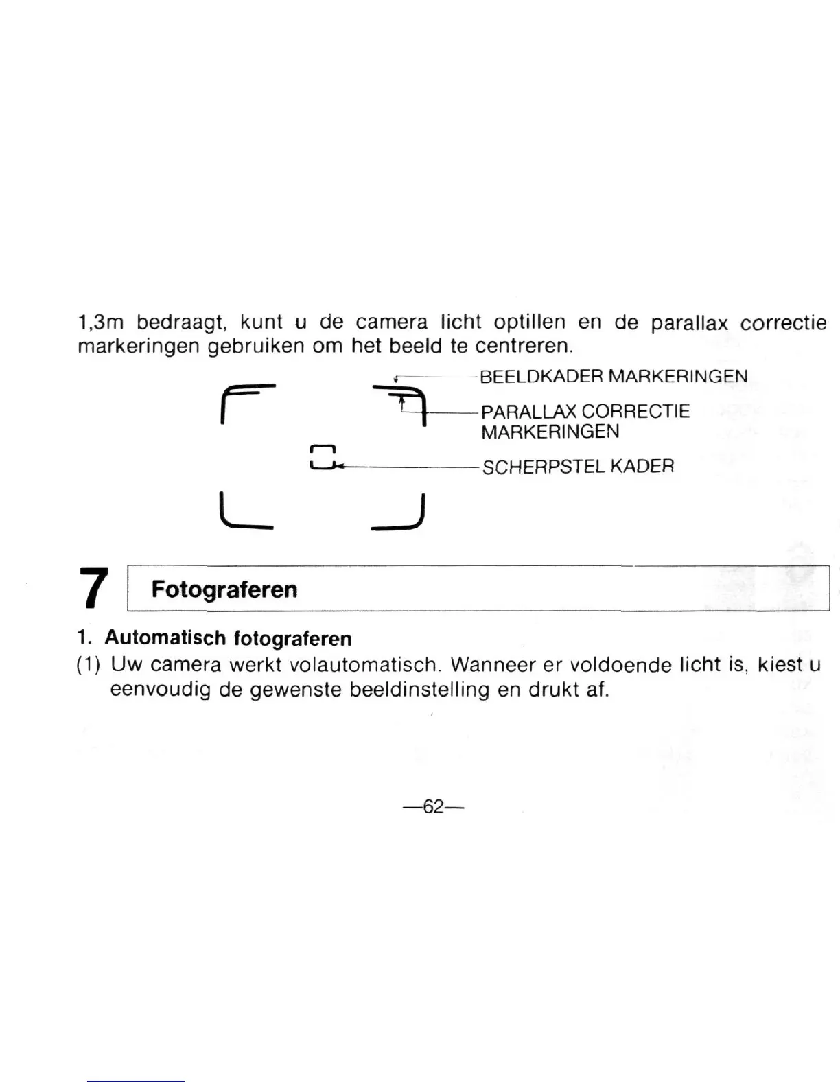 1,3m bedraagt, kunt u de camera licht optillen en de parallax correctie