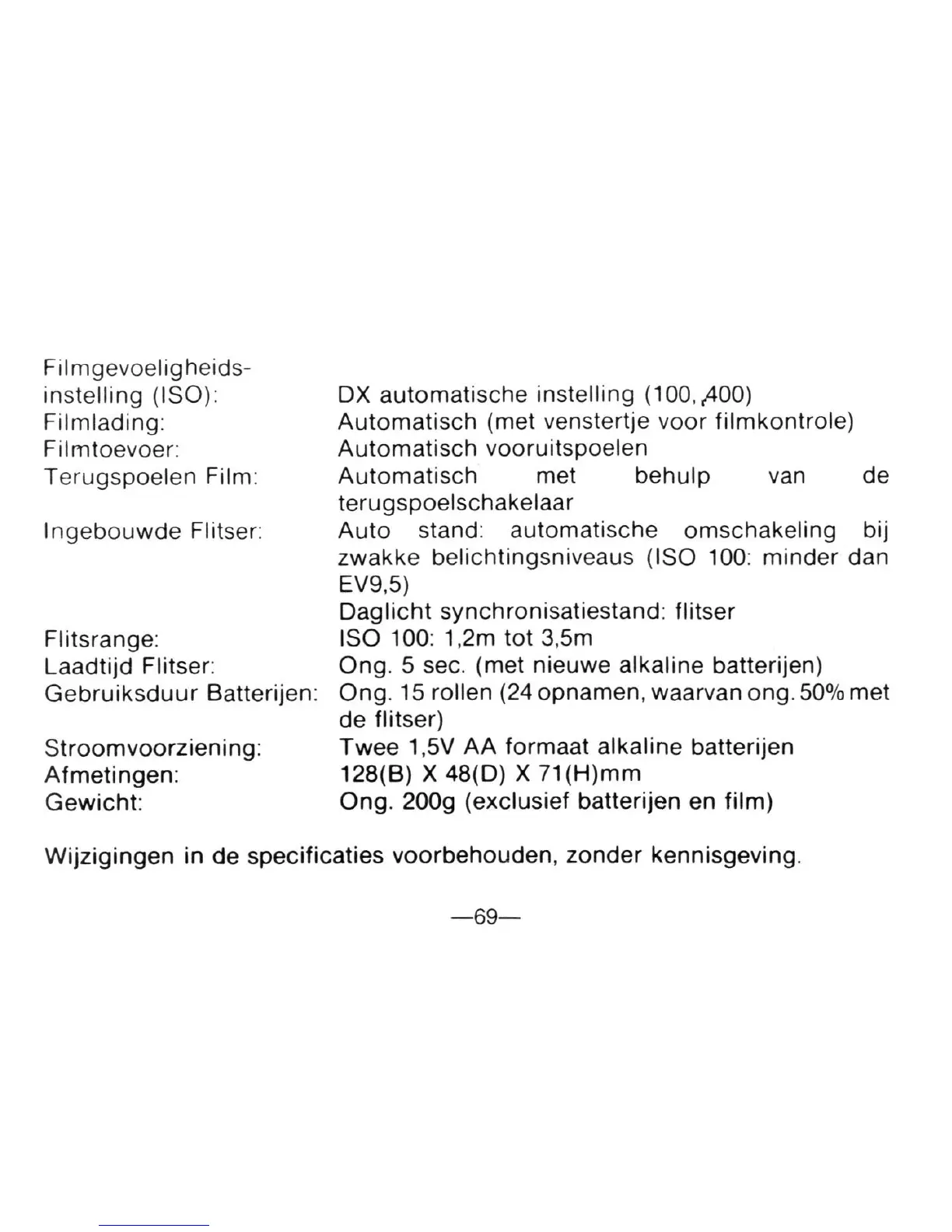200g (exclusief batterijen en film)