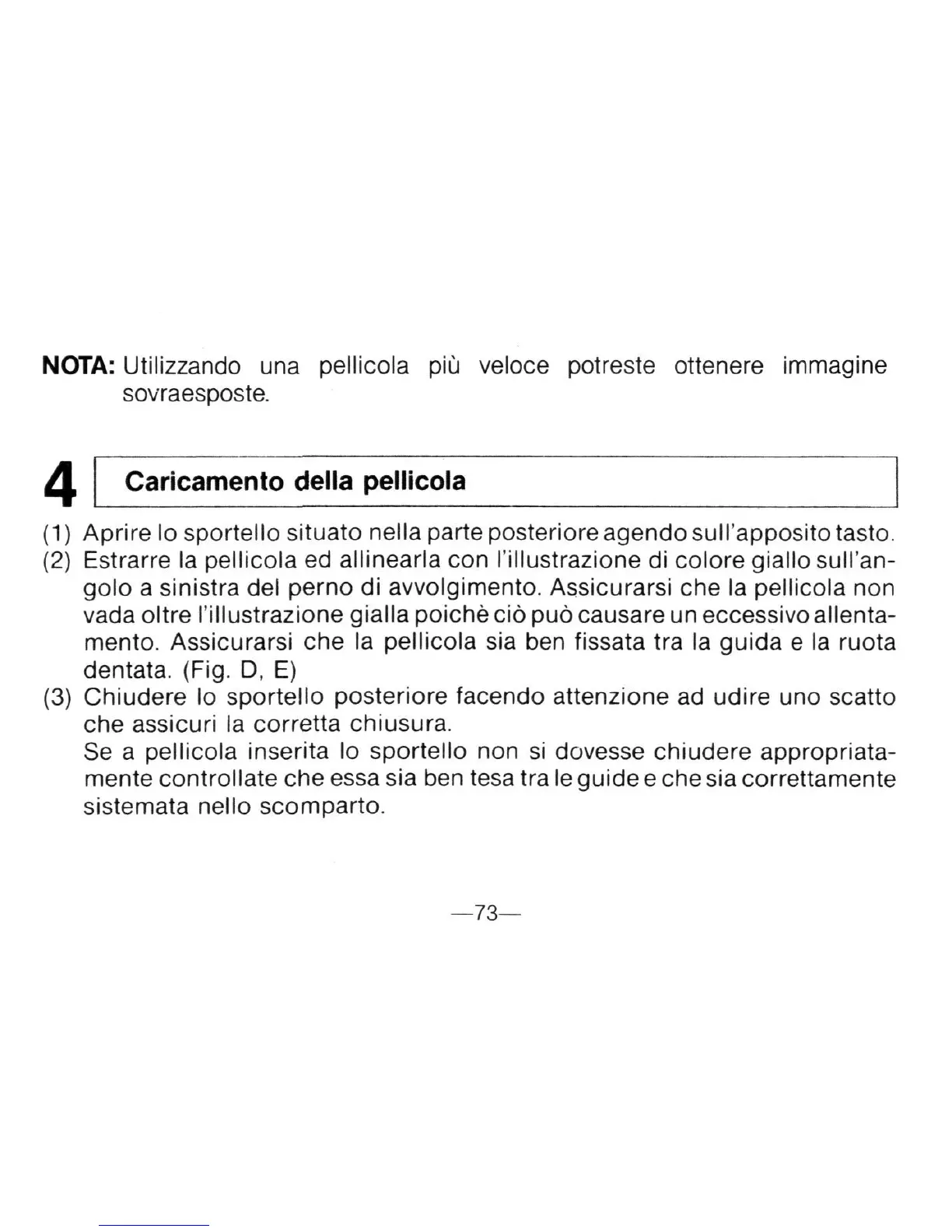 NOTA: Utilizzando una pellicola piu veloce potreste ottenere immagine