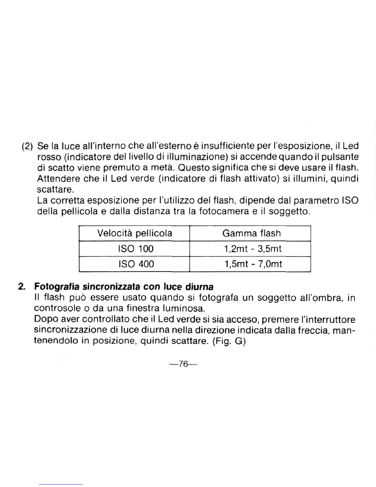 tenendolo in posizione, quindi scattare. (Fig. G)