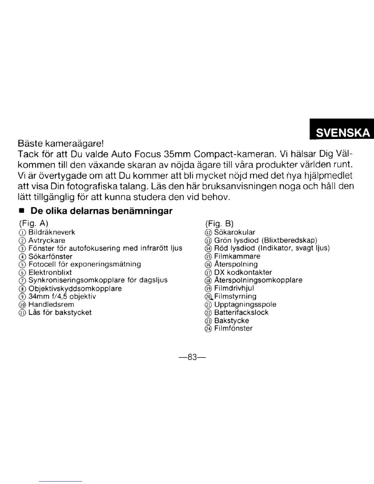 Tack for att Du valde Auto Focus 35mm Compact-kameran. Vi halsar Dig Val-