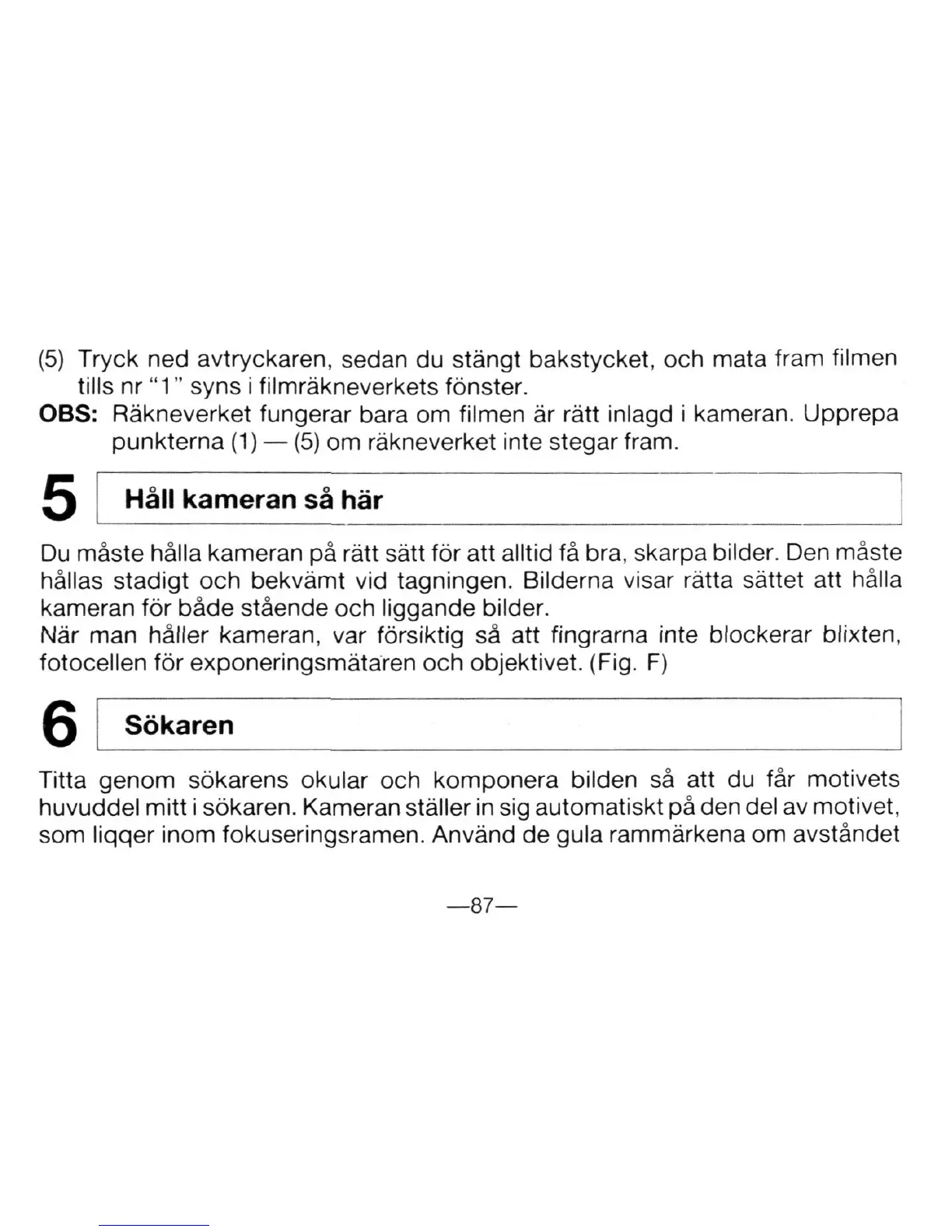 (5) Tryck ned avtryckaren, sedan du stangt bakstycket, och mata fram filmen