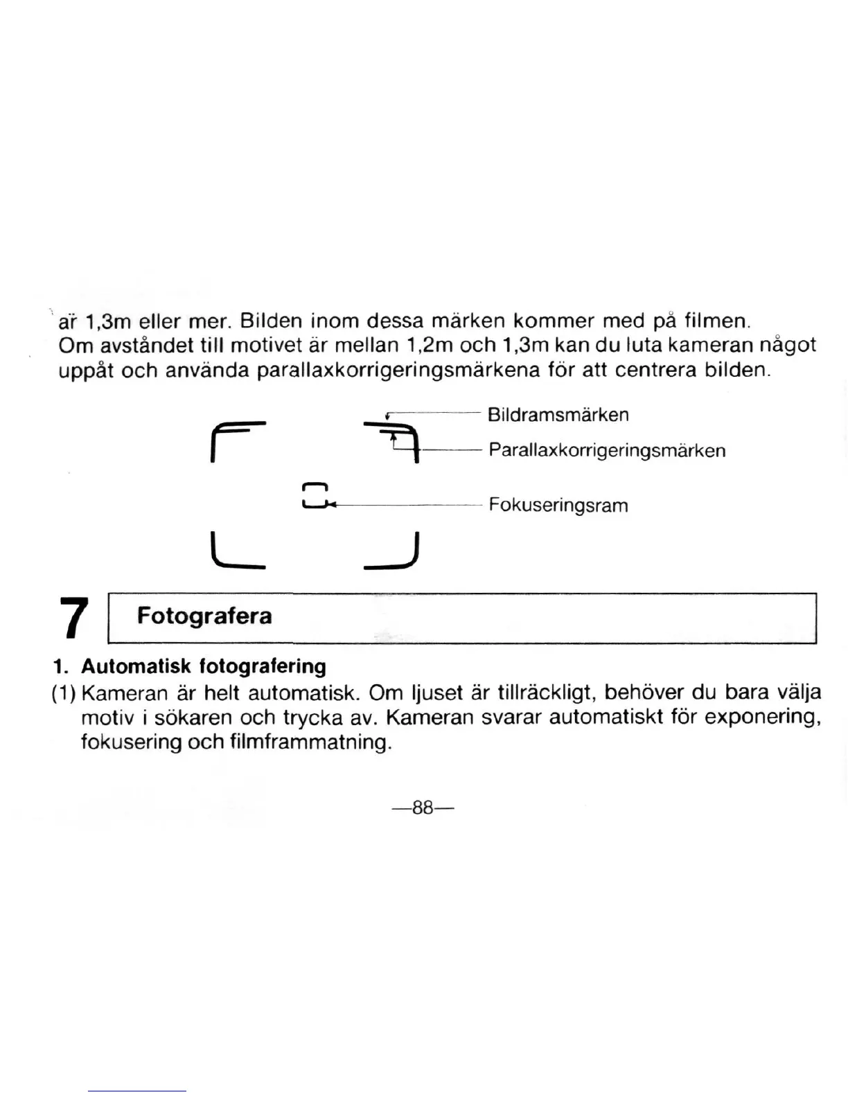 ar 1,3m eller mer. Bilden inom dessa marker) kommer med pa filmen.