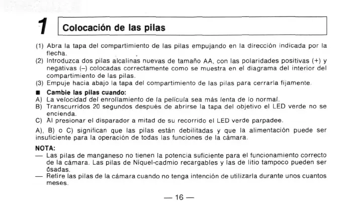 — Retire las pilas de la camara cuando no tenga intencion de utilizarla durante unos cuantos