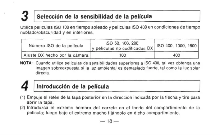 NOTA: Cuando utilice peliculas de sensibilidades superiores a ISO 400, tal vez obtenga una