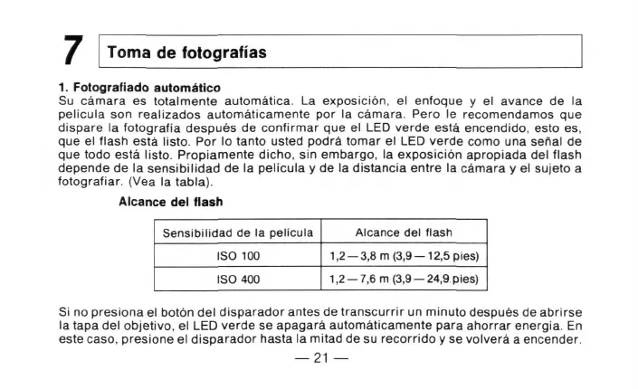 la tapa del objetivo, el LED verde se apagara automaticamente para ahorrar energia. En