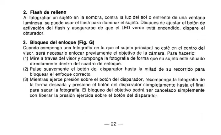 3. Bloqueo del enfoque (Fig. G)