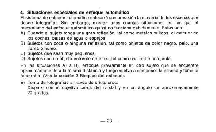mecanismo del enfoque automatico quiza no funcione debidamente. Estas son: