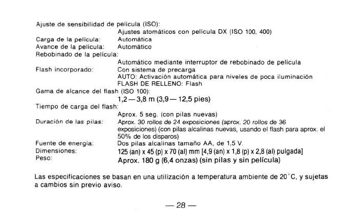 Ajustes atomaticos con pelicula DX (ISO 100, 400)