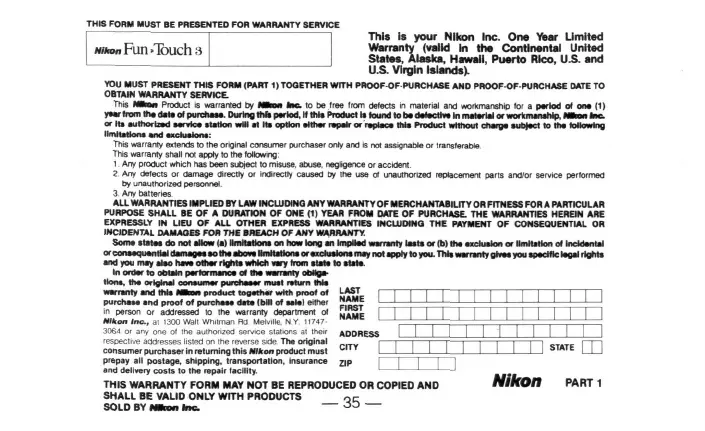 Nikon Inc., at 1300 Walt Whitman Rd Melville, NY 11747- " ' ••,