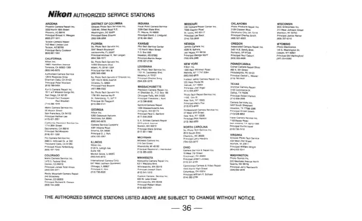 THE AUTHORIZED SERVICE STATIONS LISTED ABOVE ARE SUBJECT TO CHANGE WITHOUT NOTICE