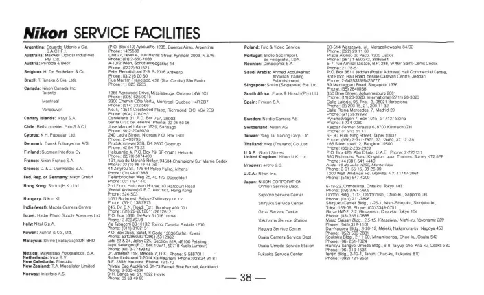 Nikon SERVICE FACILITIES
