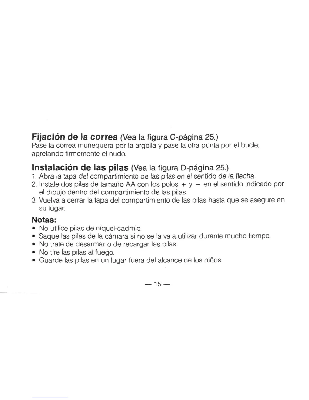 Instalacion de las pilas (Vea la figura D-pagina 25.)