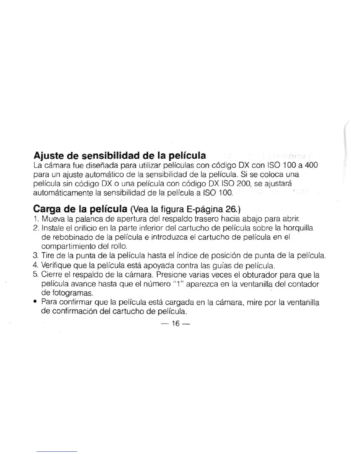Carga de la pelicula (Vea la figura E-pagina 26.)