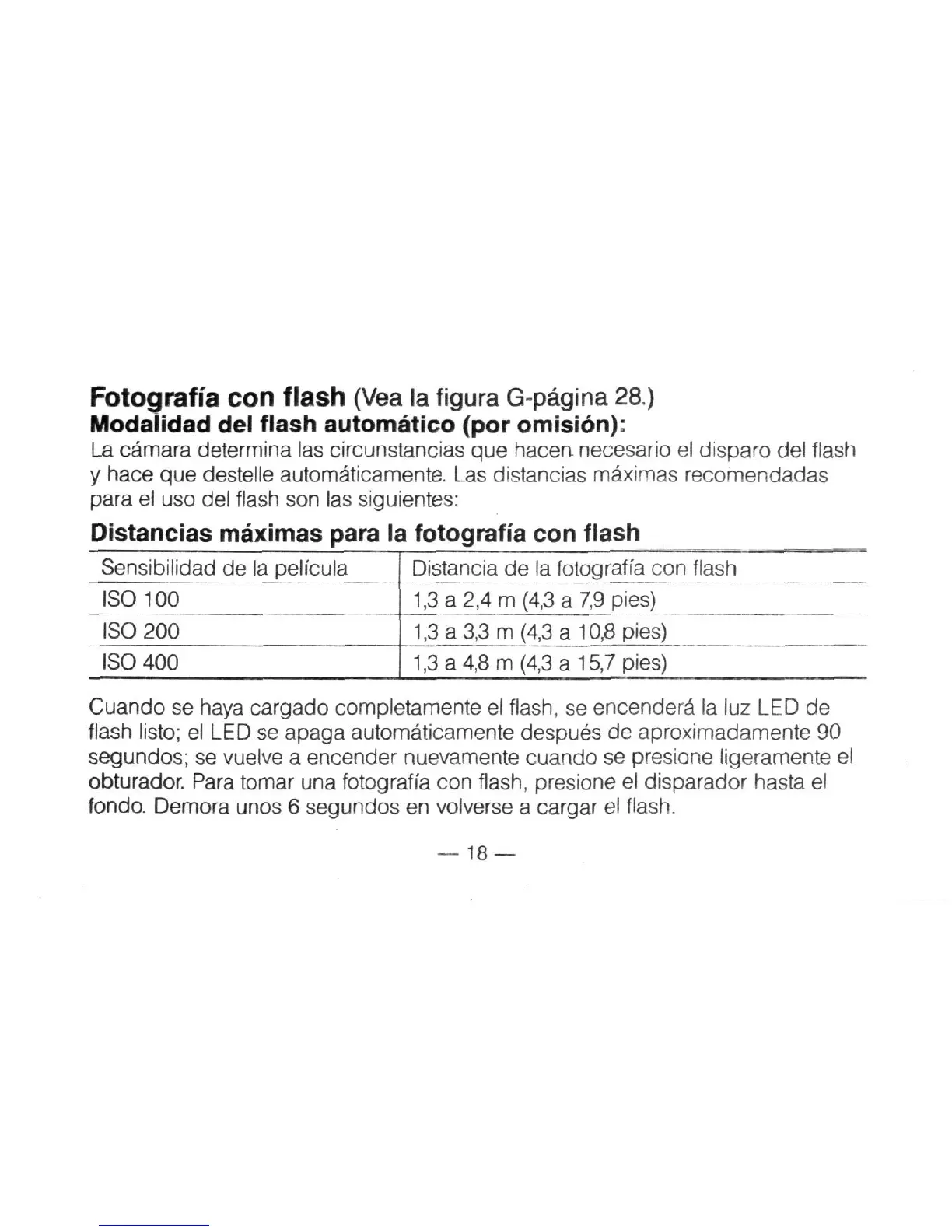 y hace que destelle automaticamente. Las distancias maximas recomendadas