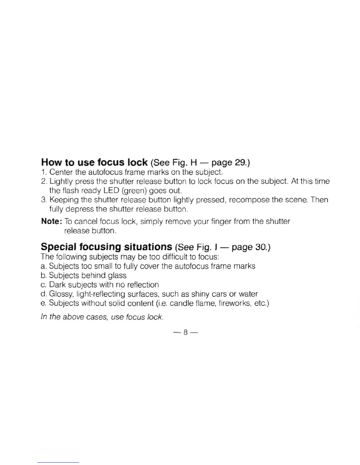 How to use focus lock (See Fig. H — page 29.)