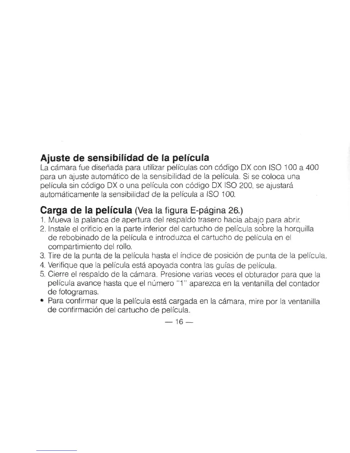 Carga de la pelicula (Vea la figura