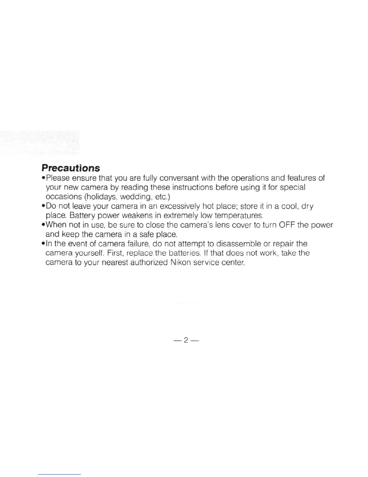 •In the event of camera failure, do not attempt to disassemble or repair the