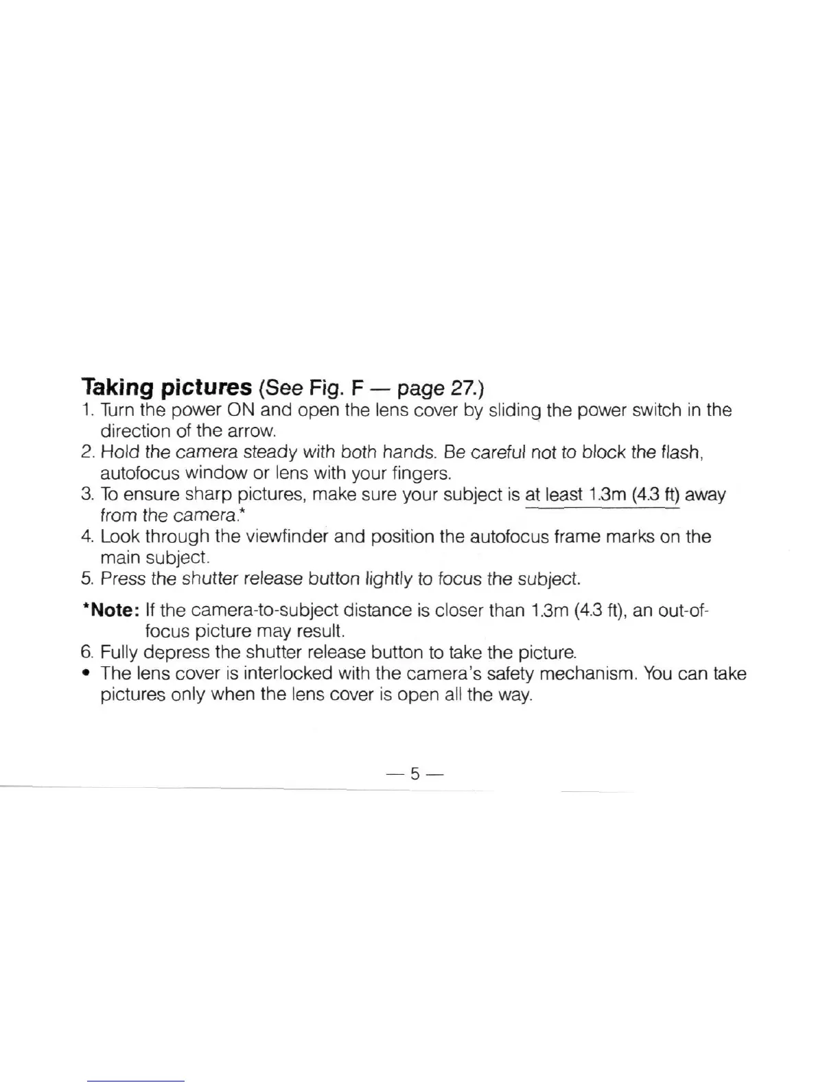 If the camera-to-subject distance is closer than 1.3m (4.3 ft), an out-of-
