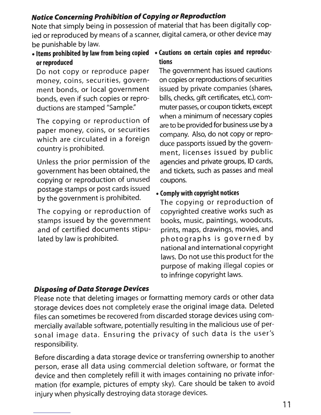 Copying or Reproduction