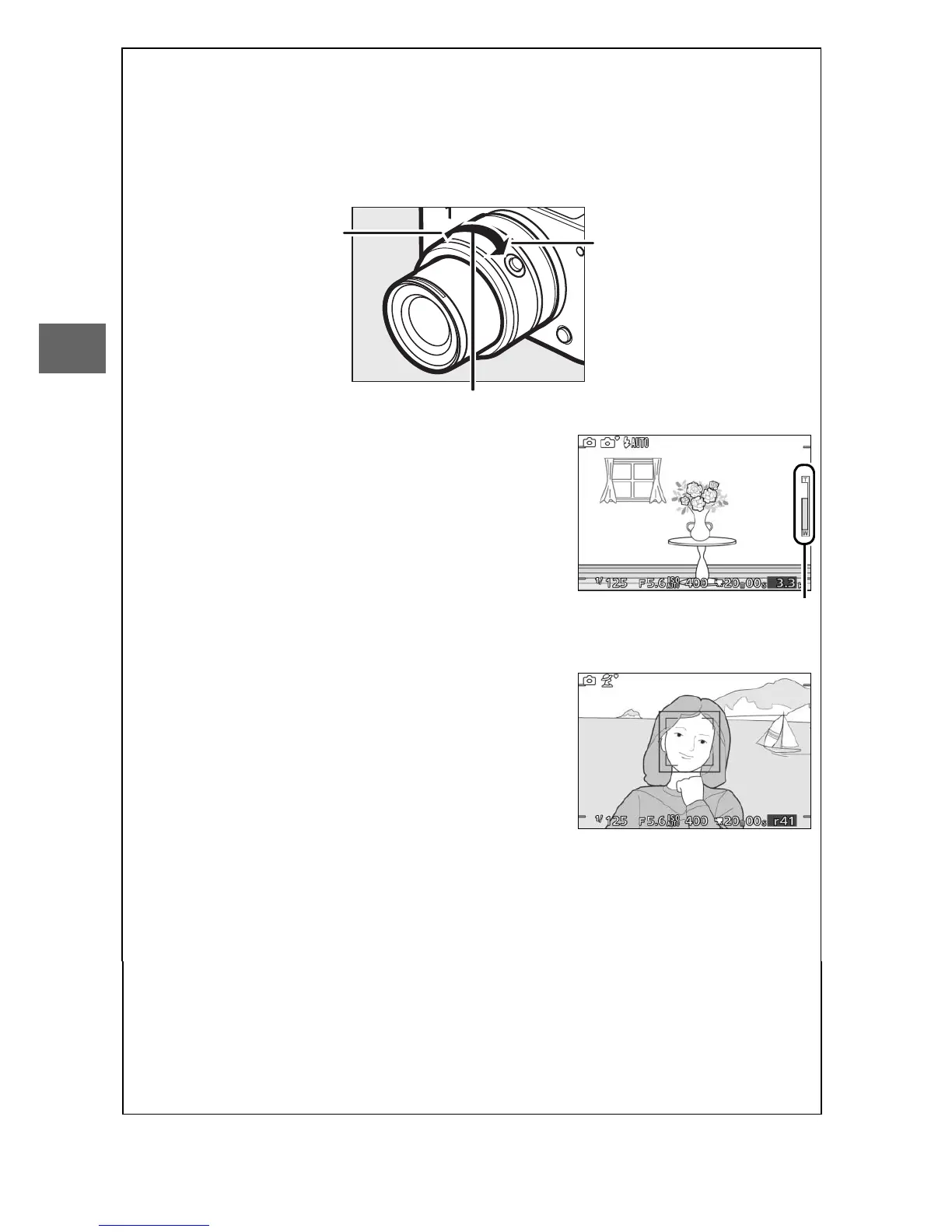 zoom in, shorter focal lengths to zoom out).