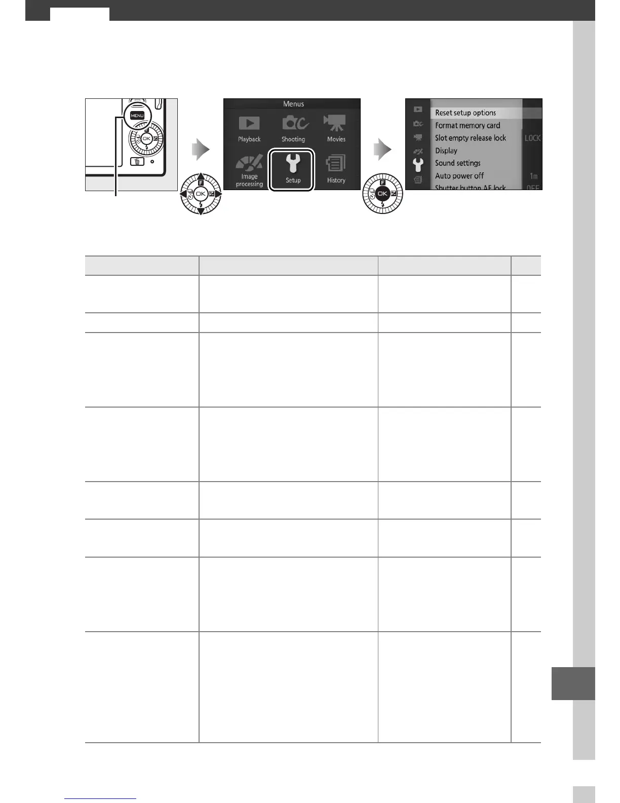 Reset setup menu options to
