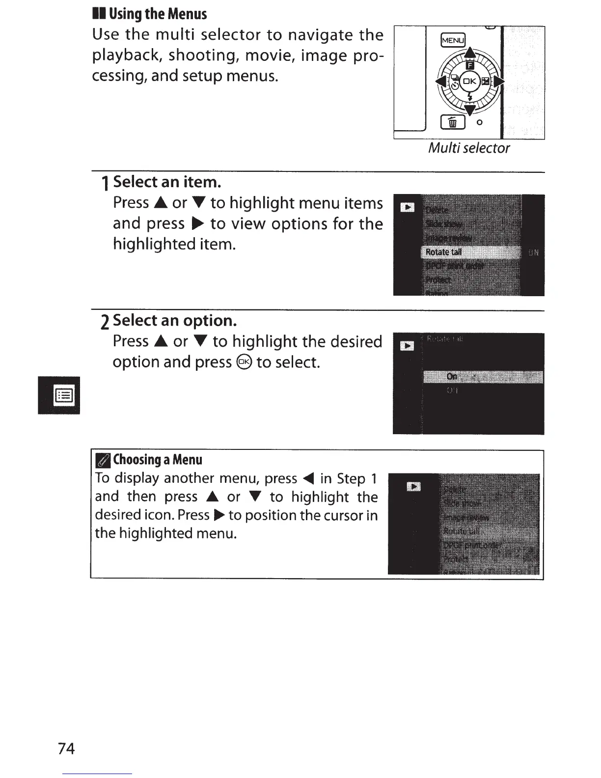 cessing, and setup menus.
