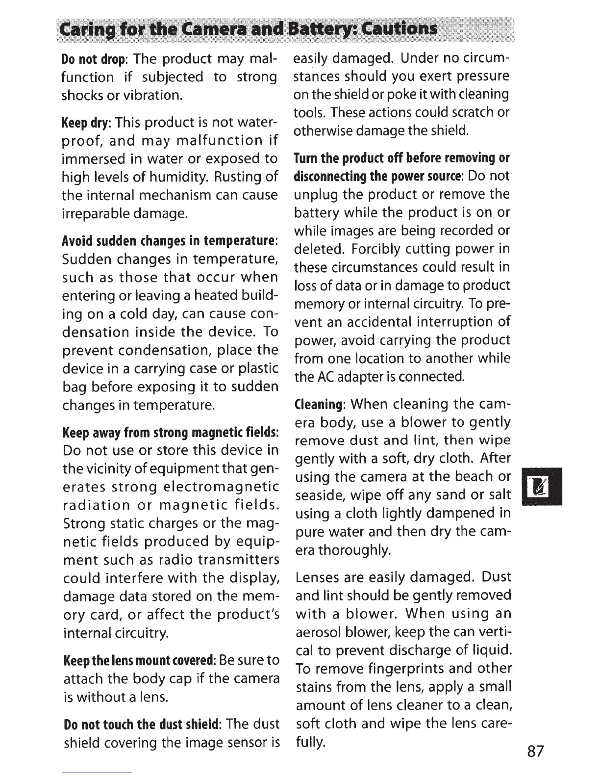 Cleaning: