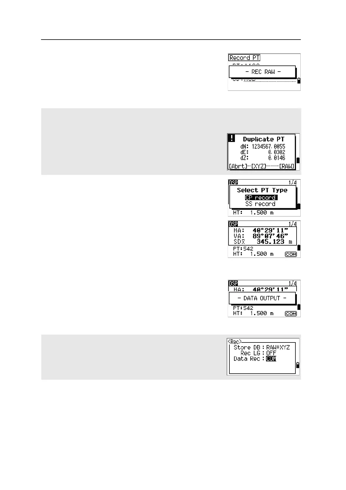 To output data on the COM port when you press [ENT], set the Data Rec field in