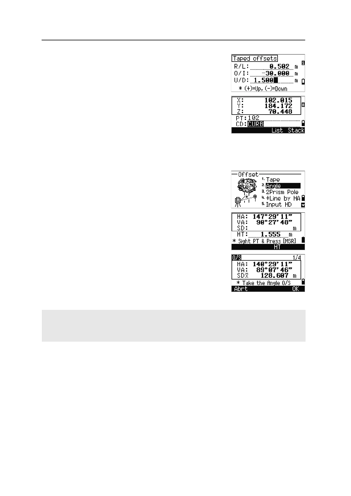 You can record an angle offset in the Basic Measurement Screen (BMS). After taking a distance measurement,