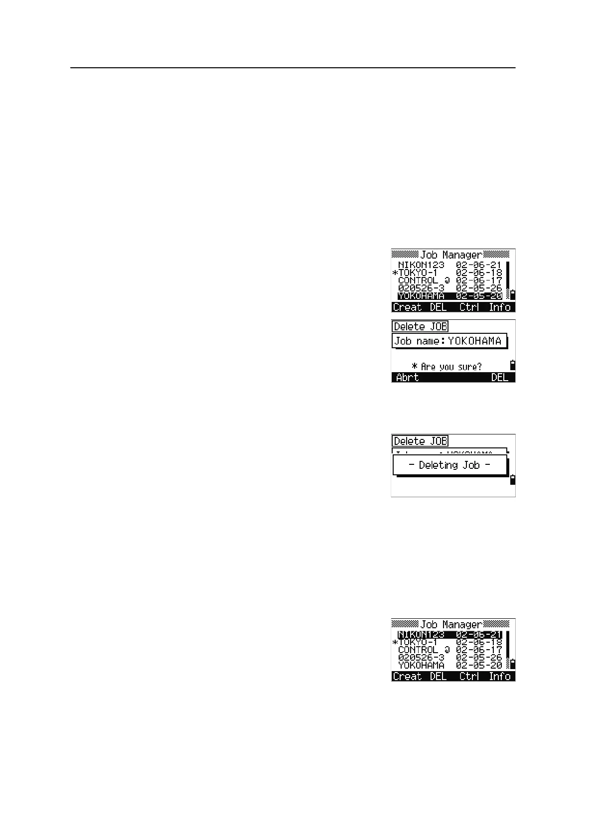 Tip – There is no undelete function in the Job Manager. Before you press [ENT] or select DEL,