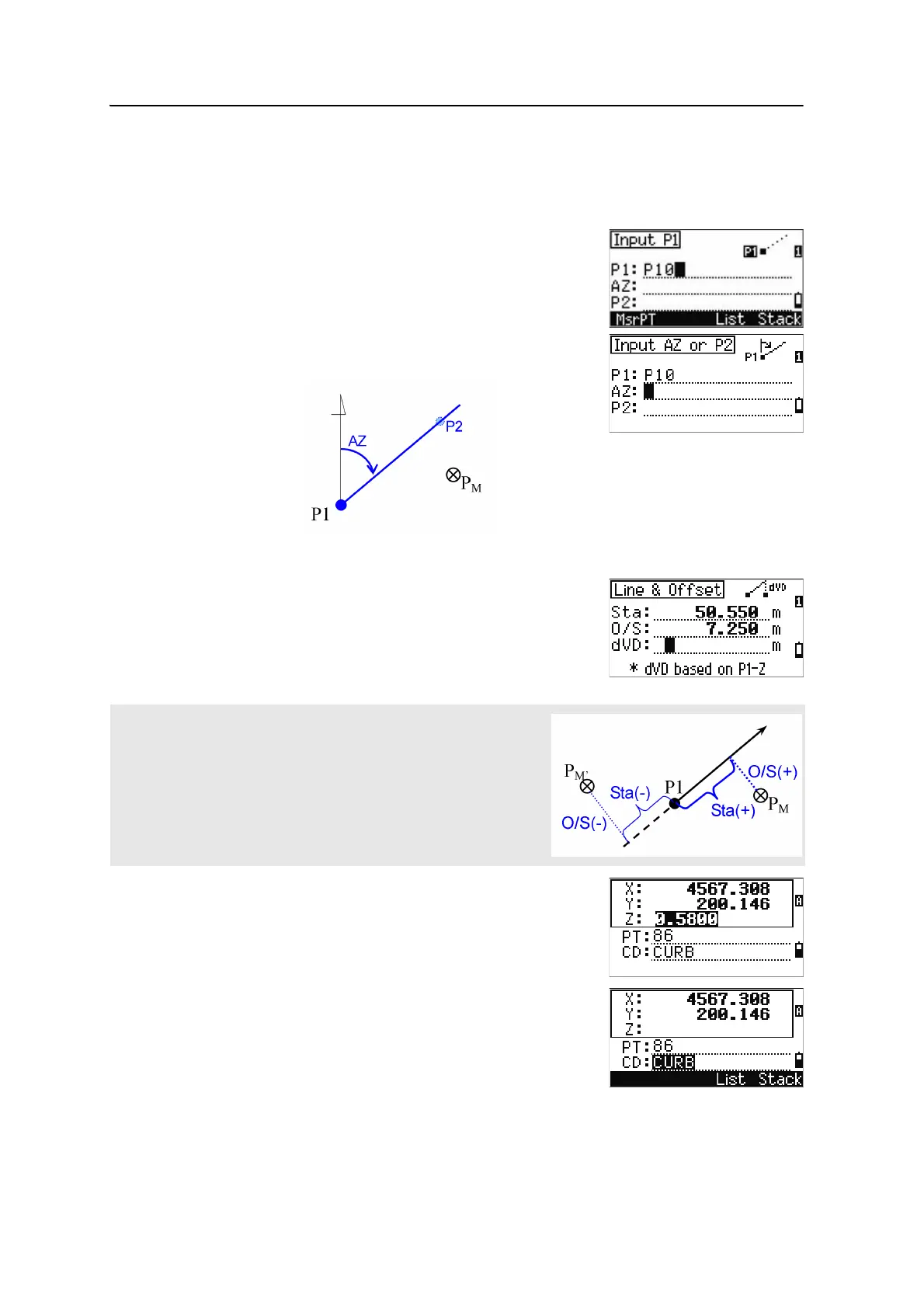 To enter the Line & offset function, press [4] or select Line & O/S in the Cogo