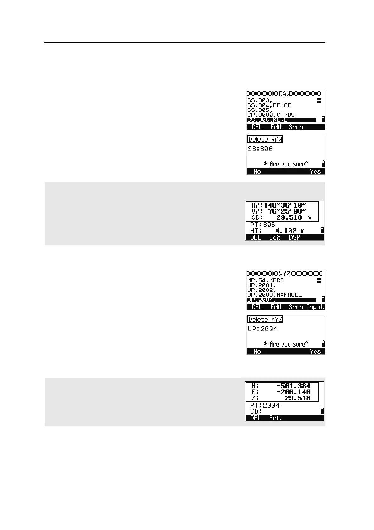 You can also delete coordinate data by pressing the DEL softkey in the