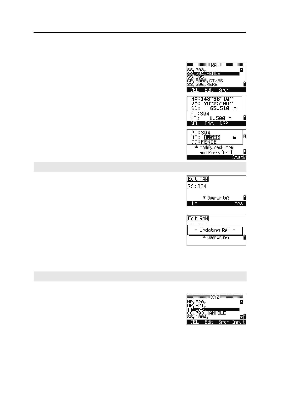 – In the RAW screen, highlight the record