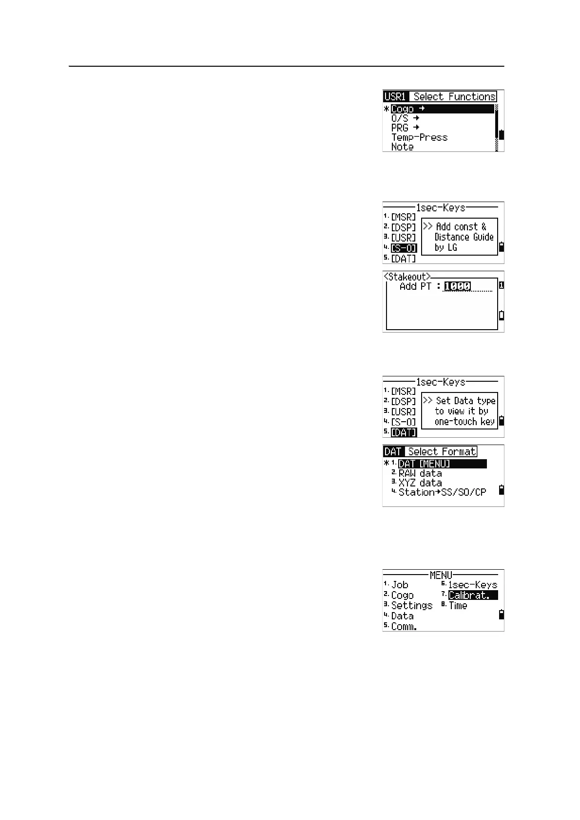 To enter the Stakeout settings screen, press [4] or select