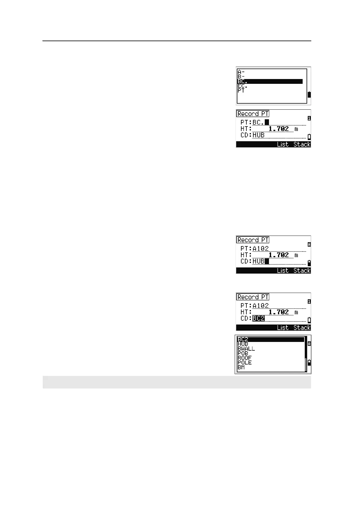 point name is entered in the PT field. You can add
