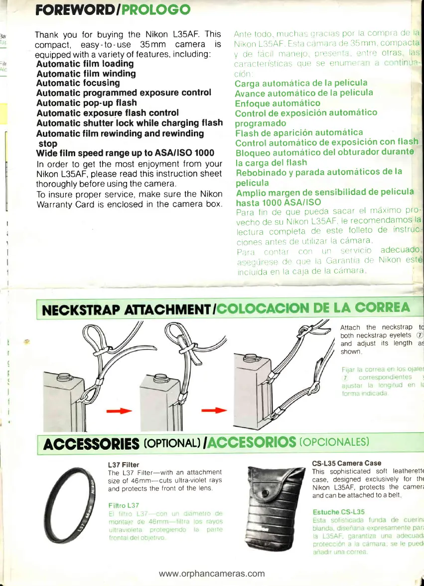 Nikon L35 AF - Foreword and Prologue; Neckstrap Attachment; Optional Accessories