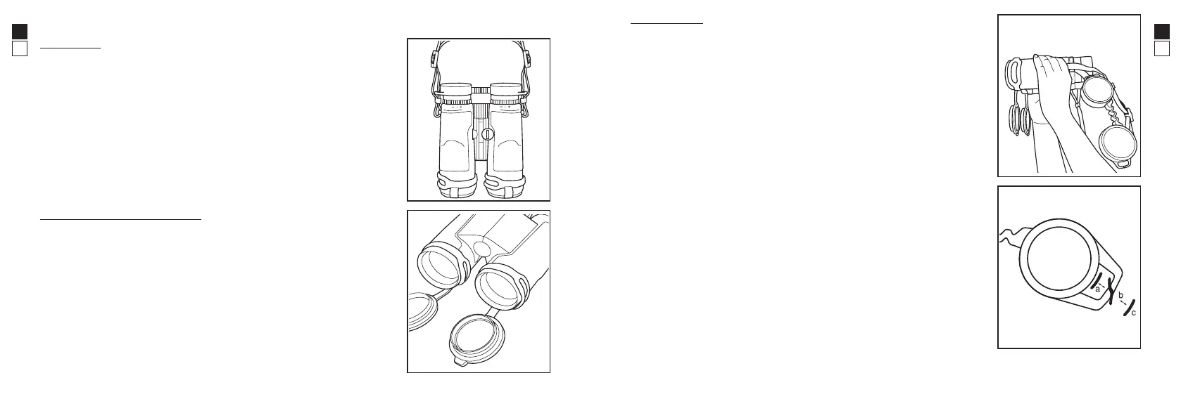 • Remove the eyepiece cap from the eyepieces, then detach the right strap