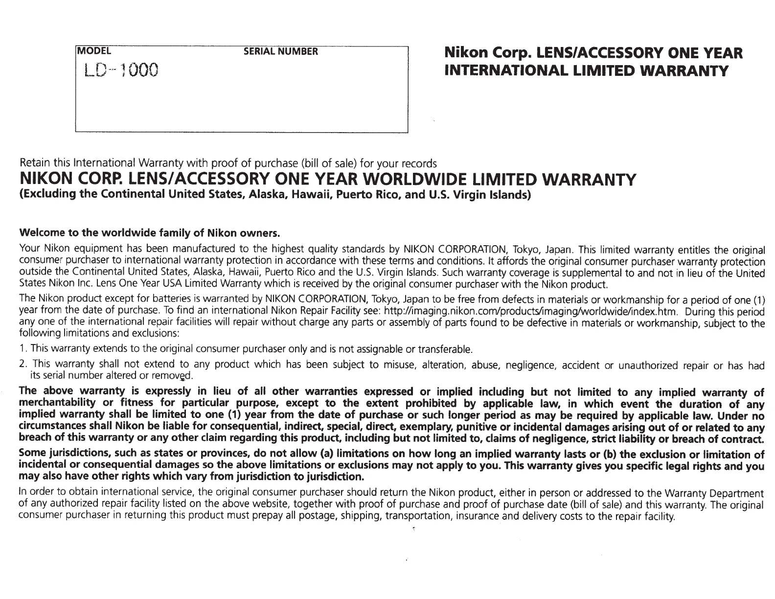 return the Nikon product, either in person or addressed