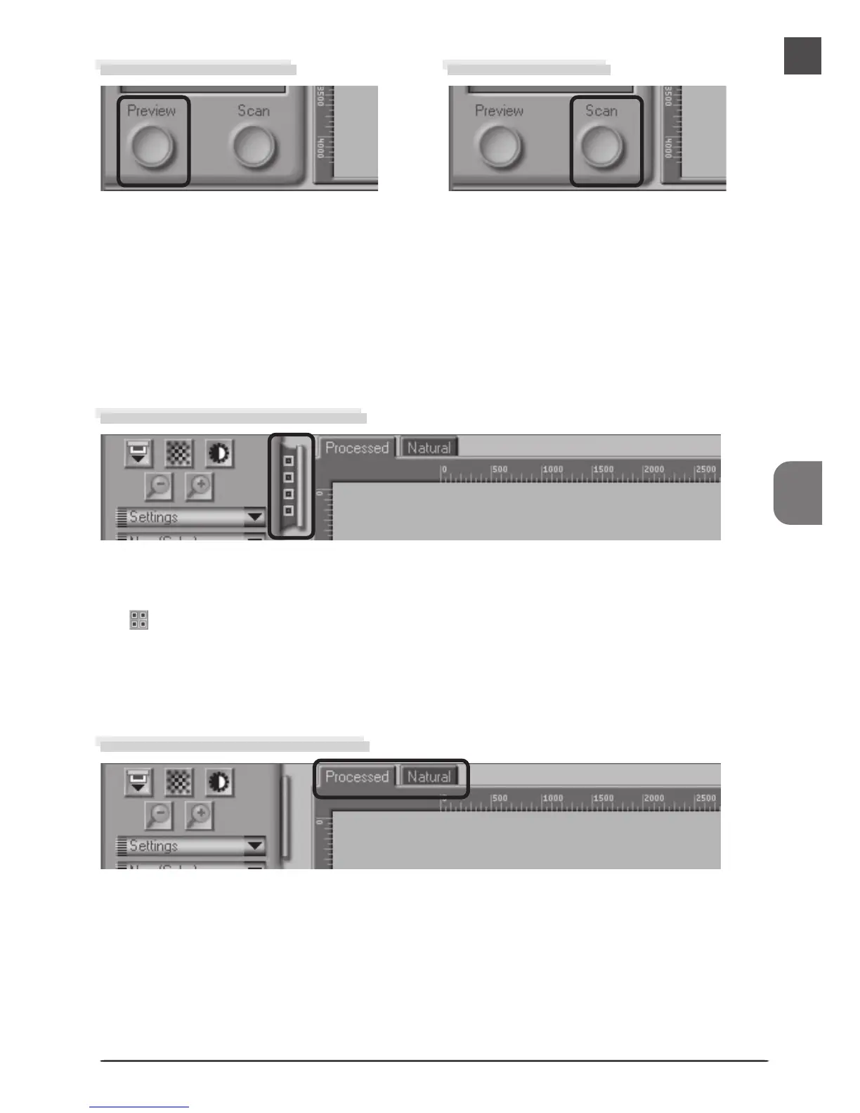 when scanned at current settings, Natural tab shows how the image looked before processing.