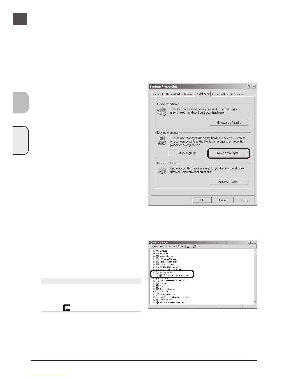 Confirm that the scanner is listed under “Imaging devices”