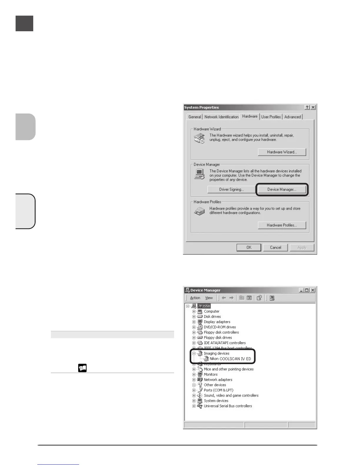 Confirm that the scanner is listed under “Imaging devices”