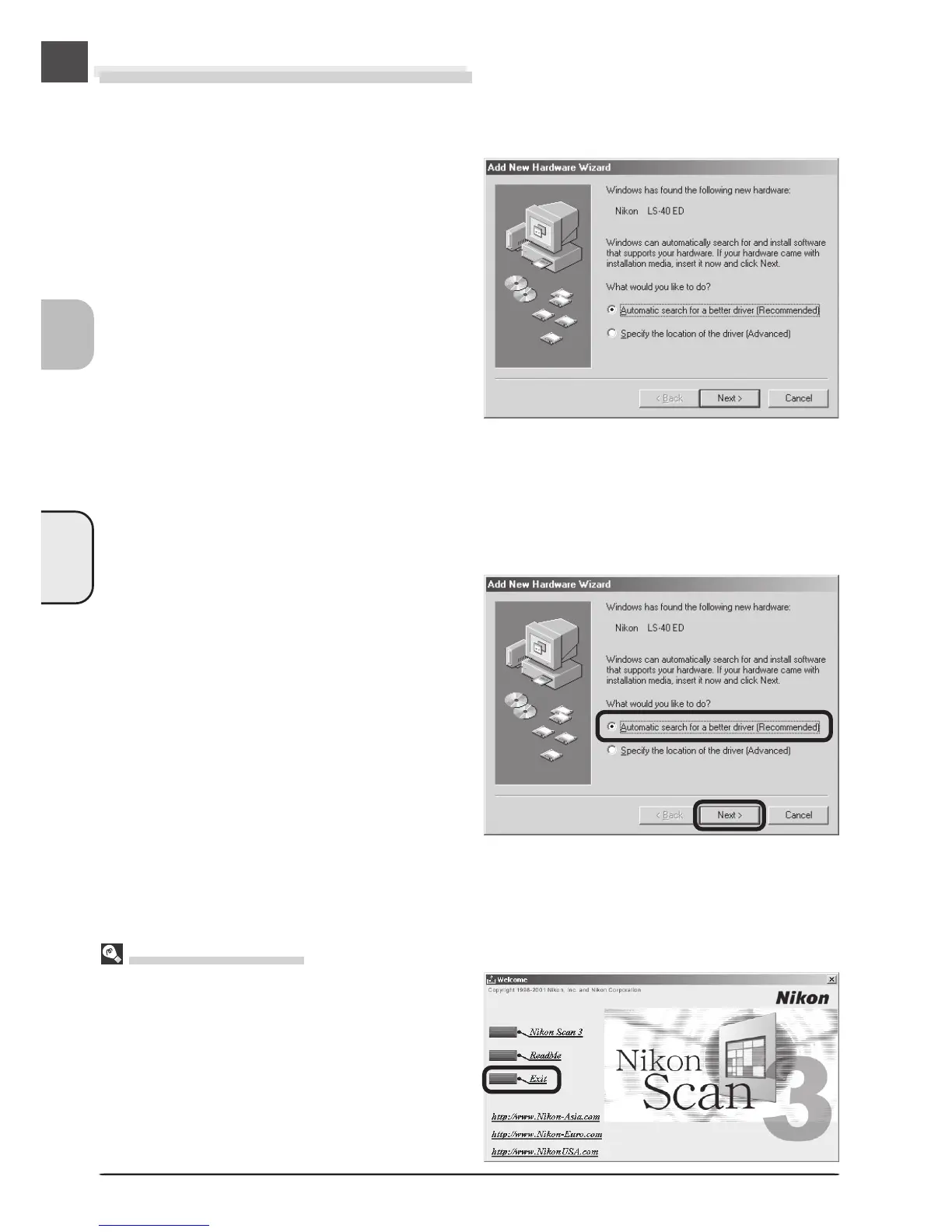 you insert the Nikon Scan CD, click Exit to close the