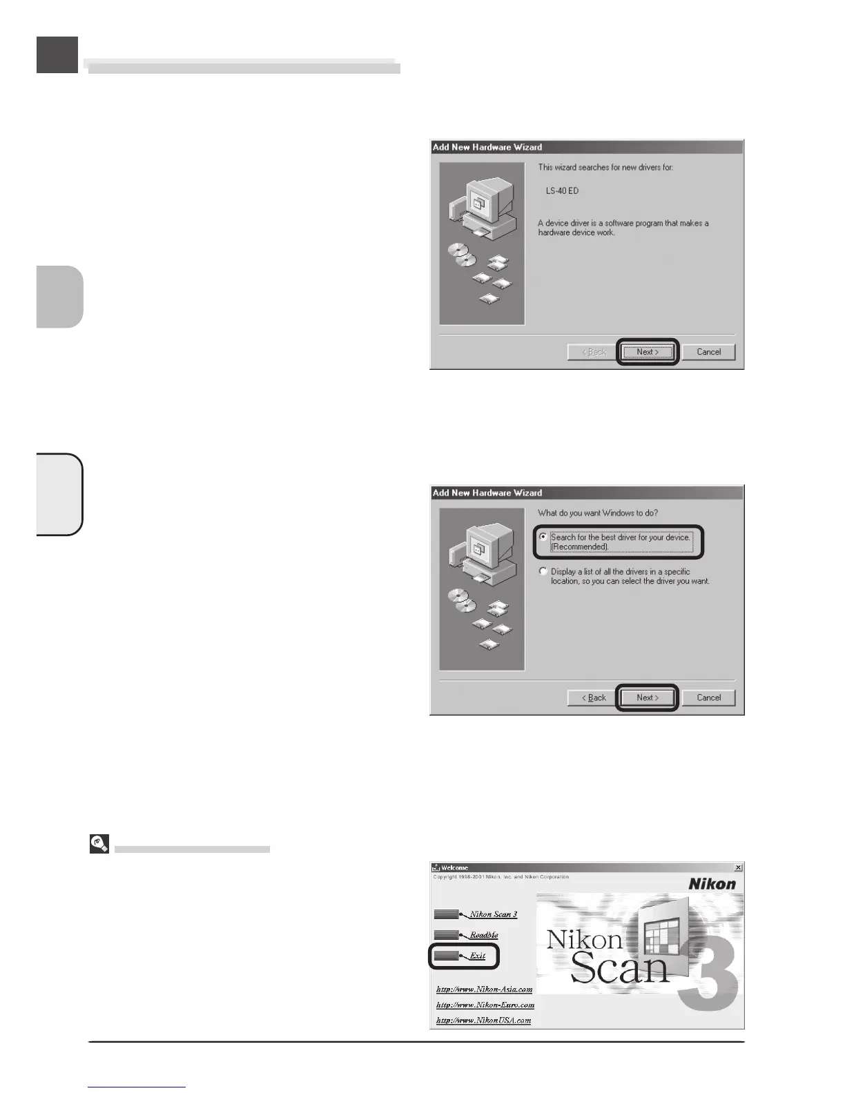 you insert the Nikon Scan CD, click Exit to close the