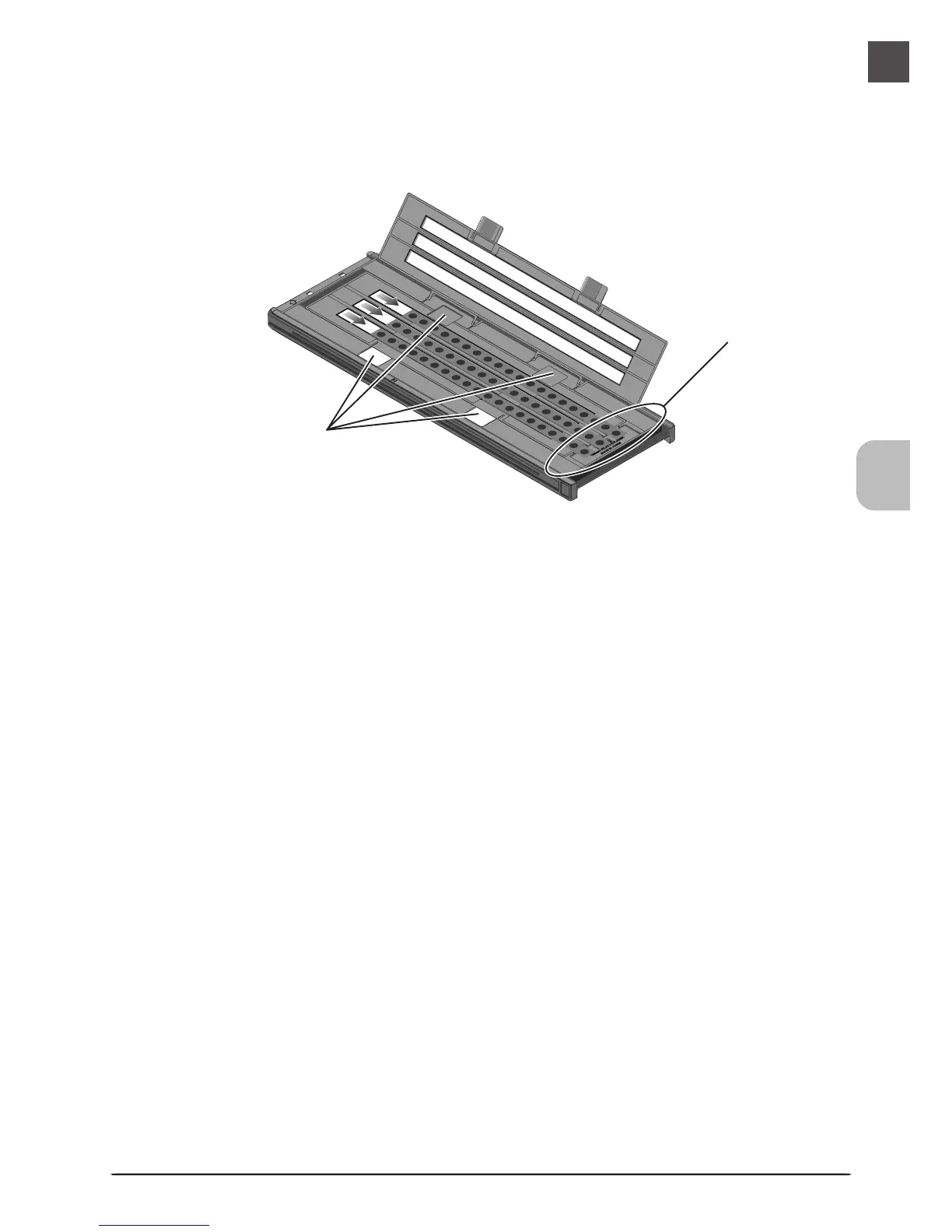 Open the holder as described on page 107 and remove the film. Insert your fingers in the holes