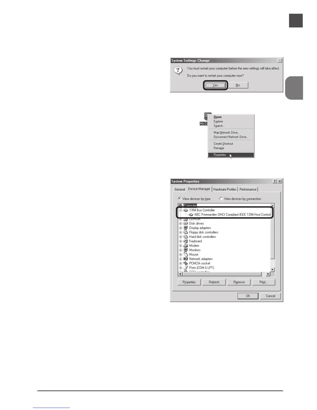 Device Manager under “1394 Bus Con-