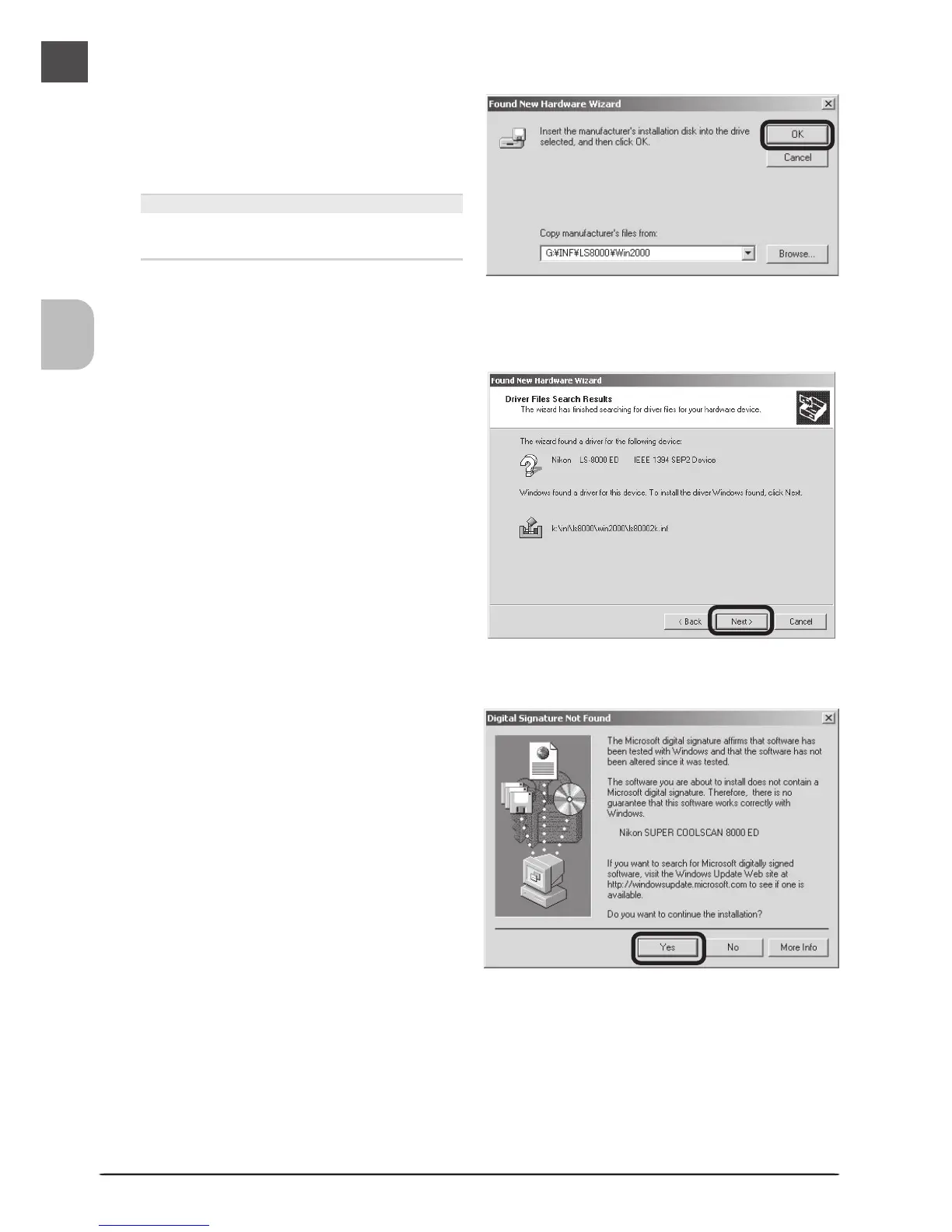 Confirm that the path “\INF\LS8000\Win2000”